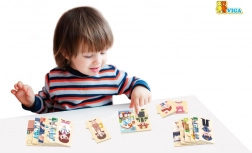 Dankzij de robuuste houten stukjes, die perfect in kinderhanden passen, trainen kleintjes grip, oog-handcoördinatie, concentratie en communicatieve vaardigheden. De illustraties zijn duidelijk, kleurrijk en motiverend om steeds opnieuw te spelen en nieuwe woorden te leren.