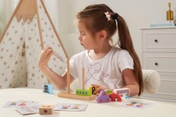 Er zijn kaarten met verschillende patronen – kinderen trainen logica, aandacht en nauwkeurigheid door stap voor stap te bouwen.