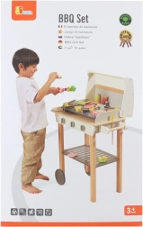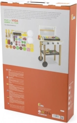 Ontdek de realistische houten grill voor kinderen van VIGA met 47 accessoires voor eindeloos kookspel. Draaibare knoppen met klikgeluid, afneembare deksel, uitschuifbaar rooster en wielen met handvat maken deze set een uitstekende keuze voor rollenspellen, ontwikkeling van de fijne motoriek en creativiteit.