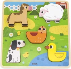 VIGA gebruikt hoogwaardig hout en gladde oppervlakken voor veilig spelen. De dikke stukjes liggen goed in de hand en zijn perfect voor kleine kinderhanden. De puzzel stimuleert zelfstandigheid, concentratie en creatief spel.