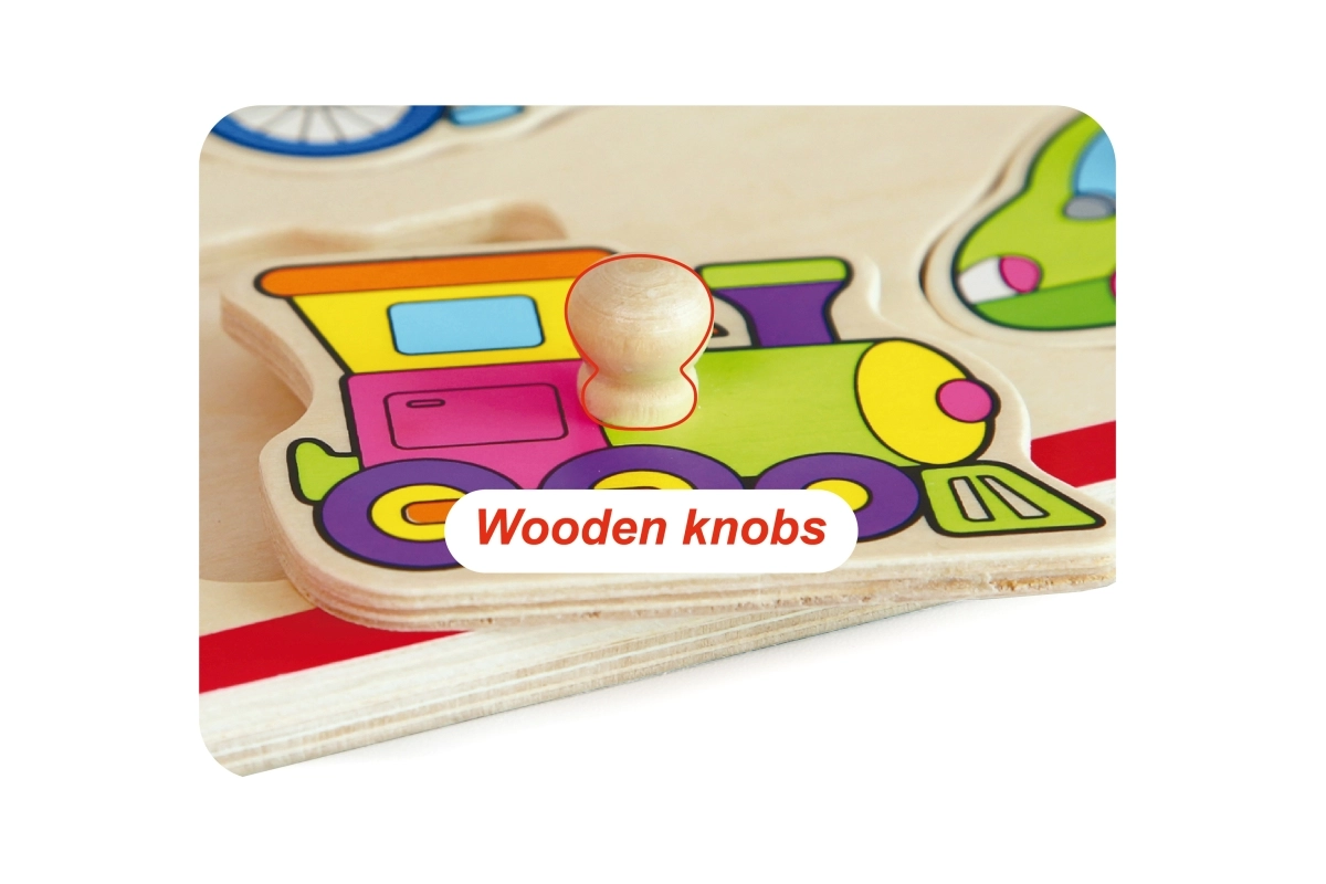 Houten inlegpuzzel vervoer met knopjes