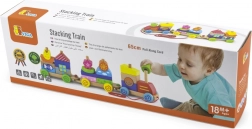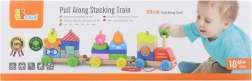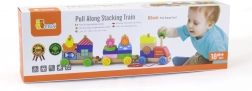Dit kwalitatieve houten trekspeelgoed-treintje met drie wagonnetjes biedt talloze mogelijkheden om kleurrijke vormen te stapelen en te herschikken. Kinderen oefenen hand-oogcoördinatie, leren kleuren en vormen herkennen en genieten ondertussen van het trekken van het treintje door het huis.