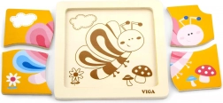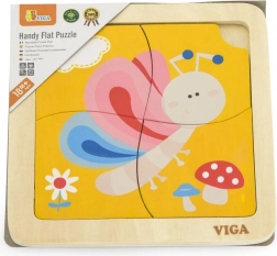 Deze schattige houten puzzel met een kleurrijke vlinder is een uitstekende keuze als eerste kennismaking met puzzels. Vier robuuste stukjes liggen prettig in kinderhandjes en worden gelegd in een stevige houten bodemplaat met voorbeeld. Eén stukje heeft een praktisch gat voor makkelijk uitnemen, zodat kinderen snel leren stukjes te hanteren en opnieuw te leggen.