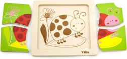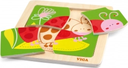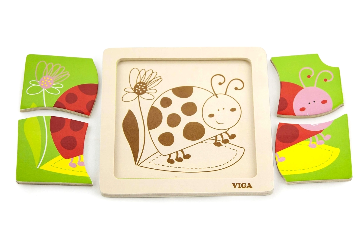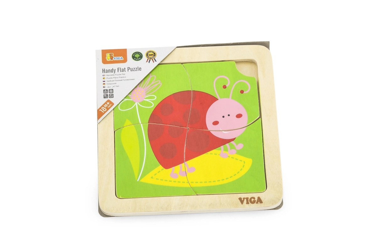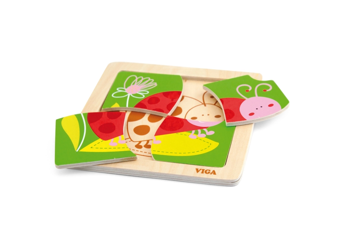 Deze eenvoudige houten puzzel met een lieveheersbeestje is een geweldige eerste puzzel voor jonge kinderen. Dankzij de stevige, gladde stukjes liggen ze goed in de hand en zijn ze gemakkelijk in het frame te plaatsen. Het motief in levendige kleuren moedigt aan tot spelen en bevordert de concentratie.