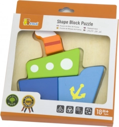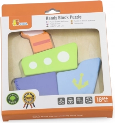 De houten mini-puzzel van Viga is de ideale eerste puzzel voor peuters en kleuters. Vier kleurrijke stukjes passen precies in de gefreesde vorm van de ondergrond en vormen na het leggen een vrolijke afbeelding van een schip. Eenvoudige vormen en heldere kleuren motiveren kinderen om steeds opnieuw te puzzelen en stimuleren hun natuurlijke nieuwsgierigheid.