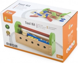 Deze hoogwaardige houten gereedschapsset in een robuuste draagkist is ideaal voor de eerste bouwpogingen. Kinderen oefenen fijne motoriek, logisch denken en oog-handcoördinatie tijdens schroeven, timmeren en aandraaien. Kleurrijke onderdelen en realistisch gereedschap stimuleren creatief spel en rollenspel.
