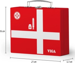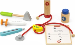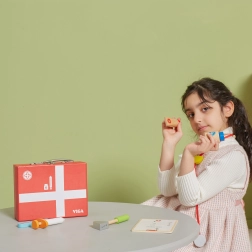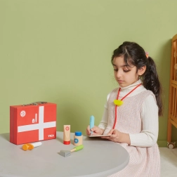 Deze prachtige doktersset in een stevige houten koffer zal alle kleine dokters en doktersassistenten blij maken. Kinderen kunnen naar het hartje luisteren met de stethoscoop, de temperatuur “meten” met de thermometer, een injectie geven of een patiëntenkaart invullen voor knuffels en poppen. Doktertje spelen is een leuke rollenspelactiviteit die sociale vaardigheden en gevoeligheid en empathie ontwikkelt.