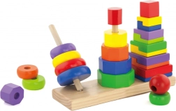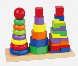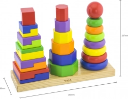 Het houten piramidespel biedt zowel plezier als educatie voor de kleintjes. Het is ontworpen om de ontwikkeling van het kind te ondersteunen via: