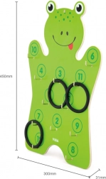 De houten kikker met genummerde doelen is het ideale familiespel voor snelle potjes en rustig oefenen van precisie. De stabiele houten constructie en 6 ringen zorgen voor eerlijk spel en een lange levensduur. Dankzij de eenvoudige regels kunnen ook de allerkleinsten meedoen.