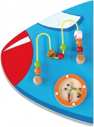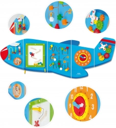Houten wandmontage paneel Vliegtuig van het merk VIGA is een multifunctioneel speelgoed, bestaande uit vijf delen die samen de vorm van een vliegtuig vormen. Elk onderdeel biedt een andere soort activiteit voor de leuke ontwikkeling van de vaardigheden van kinderen:
