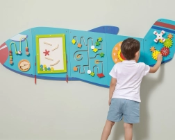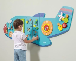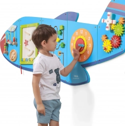 Houten wandmontage paneel in de vorm van een vliegtuig van het merk VIGA biedt kinderen diverse en leuke activiteiten om hun motorische en cognitieve vaardigheden te verbeteren. Het is ideaal voor kleuterscholen en openbare ruimtes.