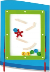 • Mini-glijbaan waar kinderen de beweging van gekleurde balletjes kunnen volgen.