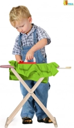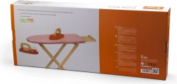 De set bevat een inklapbare plank met legplankje en een houten strijkijzer met draaiknop voor extra speelplezier. Dankzij de compacte afmetingen is alles eenvoudig op te ruimen en past het in elke kinderkamer.