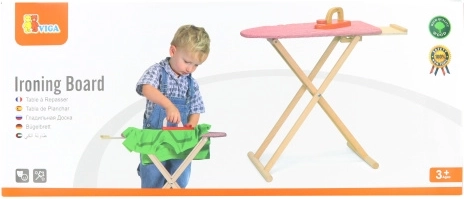 Stijlvolle en stevige houten strijkplank met strijkijzer van VIGA voor kinderen vanaf 3 jaar. Voorzien van een inklapbare constructie, een stevige stoffenhulp en een praktisch plankje voor accessoires. Perfect voor rollenspel en het ontwikkelen van de fijne motoriek. Afmetingen van de plank ca. 61 × 51 × 30 cm.