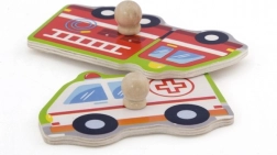 Met de houten handgrepen leren kinderen de puzzelstukken correct te hanteren en de geluiden van vervoermiddelen te herkennen.