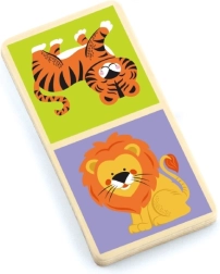 Ontdek de kleurrijke dierenwereld met het houten domino, ontworpen om plezier en educatie te combineren. Elk dominosteentje heeft aan één kant een prachtige illustratie van verschillende wilde dieren, wat kinderen helpt de wereld om ons heen te leren kennen.