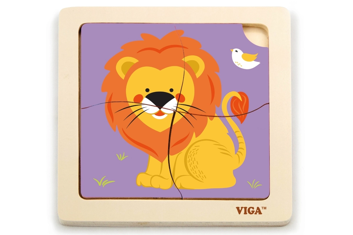 Deze kwalitatieve houten puzzel met een vrolijke leeuw is ontworpen voor kleine handjes. Dankzij de vier robuuste stukjes met gladde randen leren kinderen gemakkelijk vormen te koppelen en oefenen ze geduld en concentratie. De praktische houten basis houdt de stukjes op hun plek en maakt het leggen eenvoudiger.