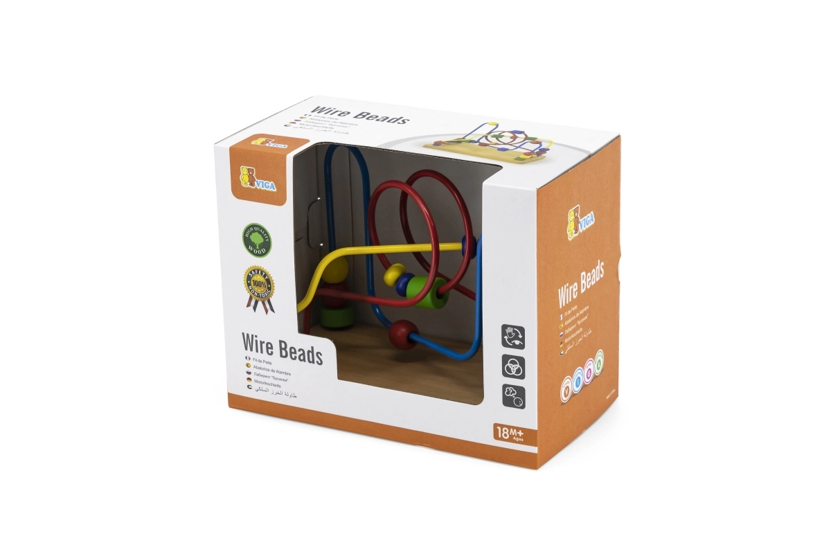 Een leuk houten kralenlabyrint dat de fijne motoriek, oog-handcoördinatie en logisch denken stimuleert bij kinderen vanaf 18 maanden. De stevige houten basis en kleurrijke draadbanen met kralen zorgen voor veilig en langdurig speelplezier.