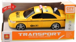 Ontdek het plastic taxi op batterijen dat elke kleine chauffeur zal verrassen. Na het indrukken van de knoppen op het dak licht de wagen op en maakt authentieke geluiden, waardoor het spel nog leuker en realistischer wordt. Openende deuren zorgen voor makkelijke toegang tot het interieur en stimuleren creatieve verhalen uit drukke stadsstraten.