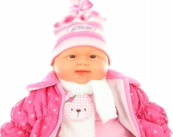 Deze grote babypop – een meisjesbaby – maakt elke kleine verzorger blij. Dankzij het zachte lijfje is ze perfect om te knuffelen en te dragen, terwijl de realistische babygeluiden het spel extra echt maken. De kleertjes kun je eenvoudig uittrekken en weer aantrekken, wat de fijne motoriek en fantasie stimuleert.