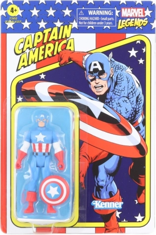 Captain America-figuur uit Marvel Legends, ideaal voor fans en verzamelaars. Gedetailleerde afwerking, afmetingen 15x23x3 cm. Geschikt vanaf 4 jaar.