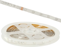De RGB-LED-strip met SMD5050-diodes is geplaatst op een flexibel substraat. Deze strip beschikt over 300 LED-diodes en is ontworpen voor brede toepassingsmogelijkheden. Hij kan worden verdeeld op gemarkeerde plekken voor lengteaanpassing. Dankzij de tweezijdige 3M-tape hecht hij gemakkelijk aan verschillende oppervlakken.