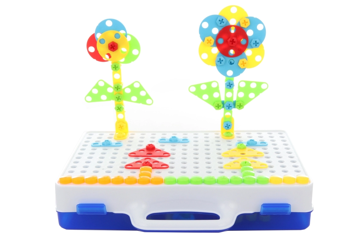 Maak bloemen, patronen en eenvoudige 3D-objecten van de onderdelen. Kinderen trainen fijne motoriek, logica en verbeelding op speelse wijze.