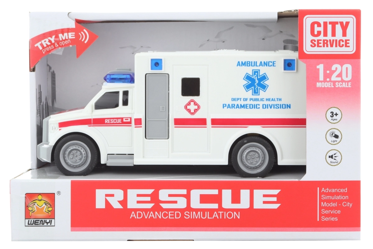 Deze gedetailleerde witte ambulance op batterijen biedt kinderen veel plezier en stimuleert de fantasie. Dankzij lichteffecten en realistische sirenegeluiden verandert elk spel in een reddingsmissie.