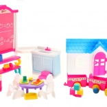 Creëer voor poppen de perfecte omgeving met de rijk uitgeruste Glorie kleuterschool-set. Kinderen zijn dol op rollenspel met realistische elementen zoals de bordwand met planken, een functionele wastafel en het huisje met openslaande deurtjes. Inclusief treintje, tafeltje, stoeltjes en een reeks kleine accessoires, speelgoed en servies – alles voor creatieve scènes en dagelijks speelplezier.
