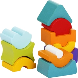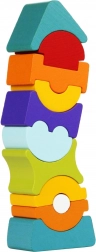Afgeronde delen maken het mogelijk de toren rechtop te bouwen of naar de zijkant te kantelen. Kinderen oefenen bij elke poging hun geduld, coördinatie en ruimtelijk inzicht.