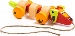 Deze houten teckel aan een touwtje is het ideale speelgoed voor de allerkleinsten. Met een vrolijk design en bewegende wieltjes biedt hij kinderen interactieve speelpret. Het is een geweldige metgezel voor de ontwikkeling van de motoriek en de verbeelding van het kind.
