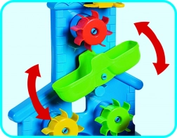 Het intuïtieve bewegende schuifje onder de trechter laat kinderen de opening en daarmee de intensiteit van de stroom regelen. Het speelgoed is in Italië vervaardigd uit hoogwaardige kunststoffen met aandacht voor veiligheid voor de allerkleinsten.