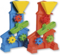 De praktische en duurzame ANDRONI zand- en watermolen geeft kinderen plezier in het ontdekken van de elementen. De drie schoepenwielen gaan gemakkelijk draaien door een waterstroom of vallend zand, terwijl de verdeelgoot de stroom geleidt. Dankzij de brede basis is het speelgoed stabiel, zelfs op een oneffen ondergrond.