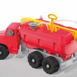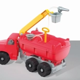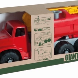 Grote plastic brandweerwagen met een uitschuifbaar platform, handpomp en waterkanon met een bereik tot 8 m uit de Giant Truck-serie, ideaal voor kinderen vanaf 36 maanden.