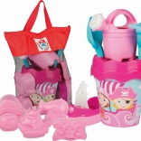 - Emmer (Ø 17 cm), zeef, gieter 0,5 l, schepje, harkje, piratenbootje, 4 vormpjes