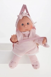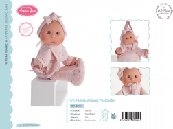 Een schattige pop van het merk Antonio Juan, ideaal als eerste pop voor peuters. Ze heeft een zacht stoffen lichaam, een realistisch hoofd en ledematen van zachte vinyl en wordt geleverd met een magnetische speen. Geselecteerde kledingstukken zijn van biologische katoen, alles verpakt in een cadeauverpakking. Formaat 36 cm, aanbevolen vanaf 18 maanden.