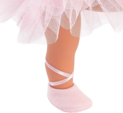 De pop draagt een balletoutfit met bloemendetails en haar kleding is gemaakt van organisch katoen, wol en gerecycleerde materialen. Het is het ideale cadeau dat zowel vreugde als educatie brengt.