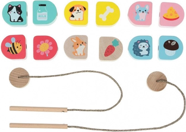 Ontdek een leuk, educatief spel dat vaardigheden ontwikkelt bij kinderen vanaf drie jaar. De rijgset Cubika Wat eten we bevat kleurrijke houten stukjes met dieren en hun favoriete lekkernijen. De taak is om de juiste paren te vinden en ze aan het koord te rijgen – ideaal om fijne motoriek, geduld en logisch denken te trainen.