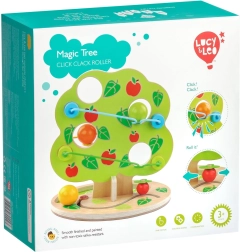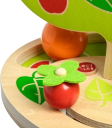 De stijlvol vormgegeven knikkerbaan in boomvorm heeft meerdere cascaderails aan de zijkanten. Leg een van de gladde, grote houten bollen bovenop en kijk hoe hij naar beneden rolt, een ritmisch “klikken” maakt en tot stilstand komt aan de voet van de boom. Het speeltje is ideaal voor actieve kinderen die houden van beweging, geluiden en het ontdekken van oorzaak en gevolg.