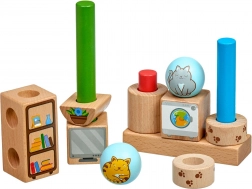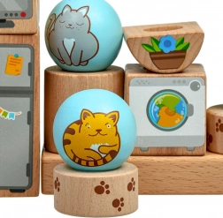 Duurzame houten vormen met fijn geschuurde oppervlakken en geïllustreerde motieven van katten en voorwerpen. Ideaal voor kleine kinderhanden.