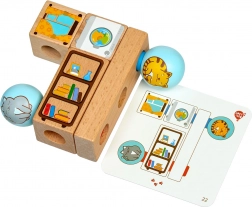 De set bevat 24 kaarten met voorbeelden die kinderen begeleiden van eenvoudig naar uitdagender leggen. Perfect voor het ontwikkelen van logica en concentratie.