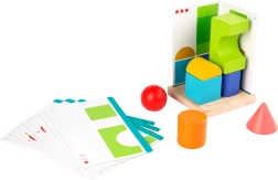 Houten basis met groef, 7 geometrische vormen, 11 opdrachtkaarten
