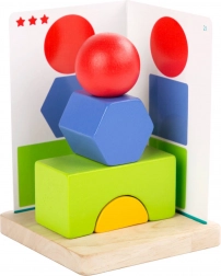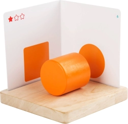Kinderen ordenen cilinders, kegels, kubussen en andere vormen volgens het voorbeeld, waardoor ze logisch denken en visuele waarneming versterken.