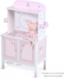 Dankzij het precisie Spaans design en zorgvuldig gekozen materialen oogt de kast licht en strak. Praktische afmetingen zorgen voor stabiliteit en voldoende ruimte voor alle benodigdheden voor de verzorging van een pop tot 45 cm.