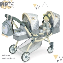 Pop Pipo maakt deel uit van de geweldige collectie van 2022 die je zeker zult waarderen. Deze collectie omvat kinderwagens, meubels voor poppen en andere accessoires voor kleine gastvrouwen. Het karakteristieke ontwerp met een grijs-witte ruit en zachte gele accessoires met pinguïnmotief voldoet aan de verwachtingen van elke kleine prinses.