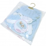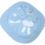 Elegante vierdelige outfit voor de baby pop New Born met een grootte van 35-36 cm bevat een decoratieve deken met strik. Perfecte set voor het spelen en stylen van je pop.
