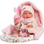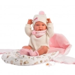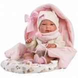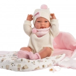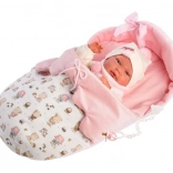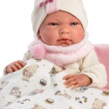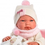 De pop wordt geleverd met schattige kleding en accessoires, waaronder een hoed en een speen, die haar realisme vergroten.