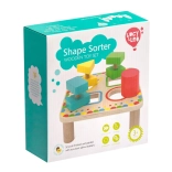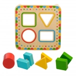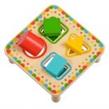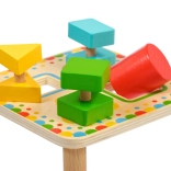 De plaat op stabiele pootjes heeft vier kleur omrande openingen die matchen met de kleuren van de afzonderlijke stukjes. De set is ideaal voor zelfstandig spel of samen ontdekken met ouders en is een uitstekende houten educatieve speelgoed voor kleuters.