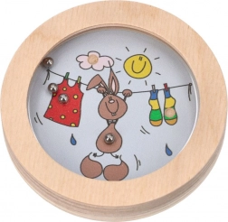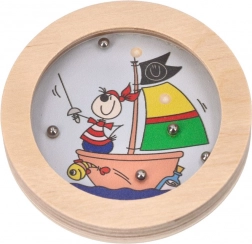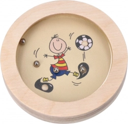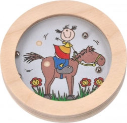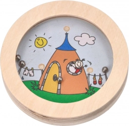 Dit houten spel met het thema Vrolijke figuurtjes is ontworpen om niet alleen plezier te brengen, maar ook de ontwikkeling van de fijne motoriek te ondersteunen. Het spel vraagt van kinderen om kleine metalen kogeltjes door de uitsparingen op het oppervlak van het speelgoed te bewegen, dat bedekt is met veilig, transparant plastic. Dankzij het robuuste houten materiaal is het speelgoed duurzaam en geschikt voor veelvuldig gebruik.