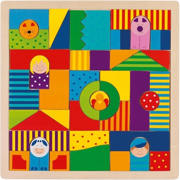 De houten mozaïek boerderij is geweldig vermaak voor creatieve kinderen. Deze set van massief hout biedt uren puzzelplezier vol kleur en fantasie.